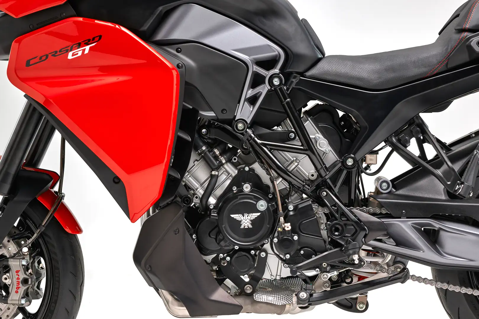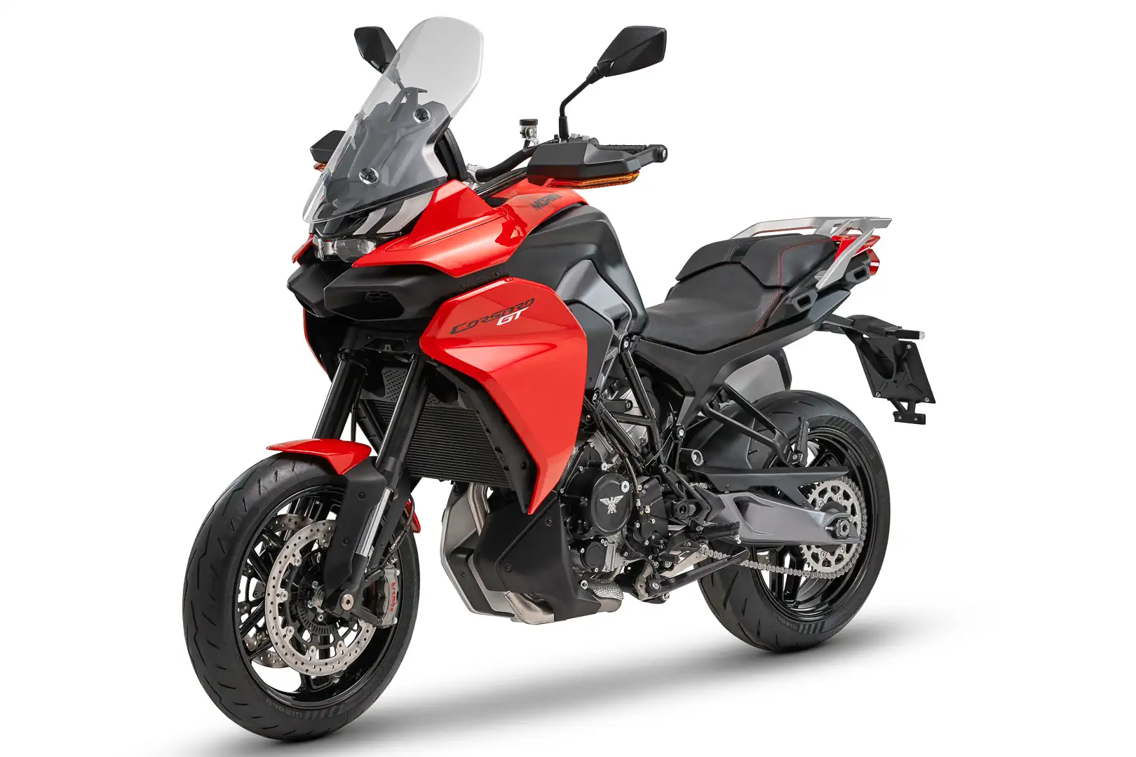 - Braking is not in short supply on the 2026 Moto Morini Corsaro GT. Radially mounted Brembo monoblock calipers squeeze a pair of 320mm discs in the front. The rear 255mm disc also works with a Brembo caliper. ABS is cornering-aware and dual-channel.