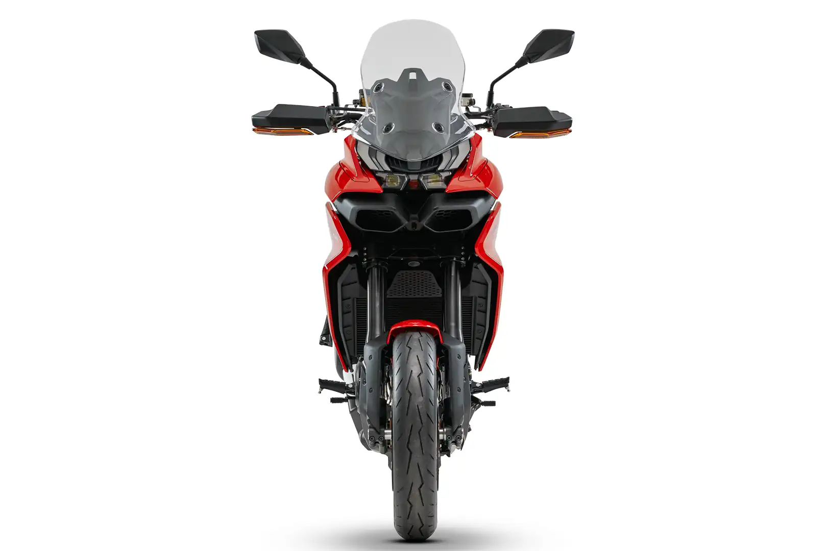 - Front brakes: 320mm discs w/ radially mounted Brembo monoblock calipers